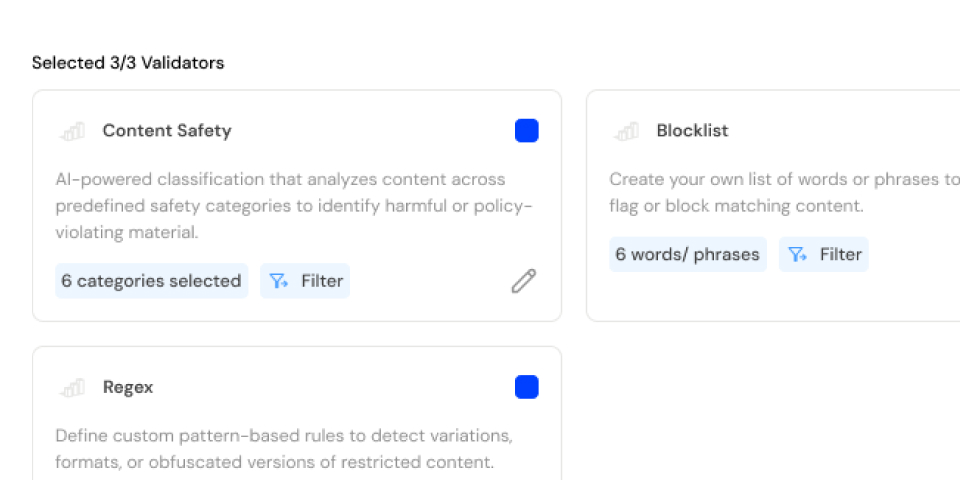 Real-time guardrails for AI systems. Validate inputs, sanitize outputs, and enforce safety policies—before content reaches users or your models.